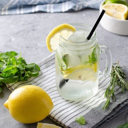 спрайт, лимонный сок, лимон, сироп лавандовый