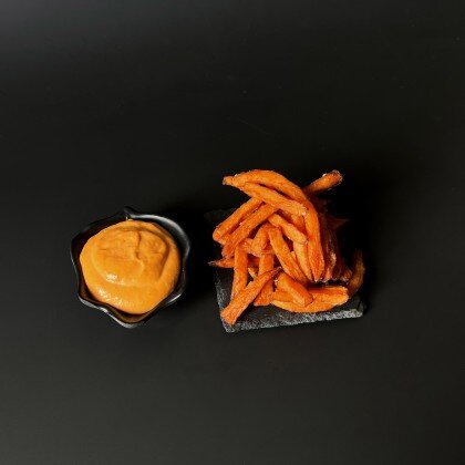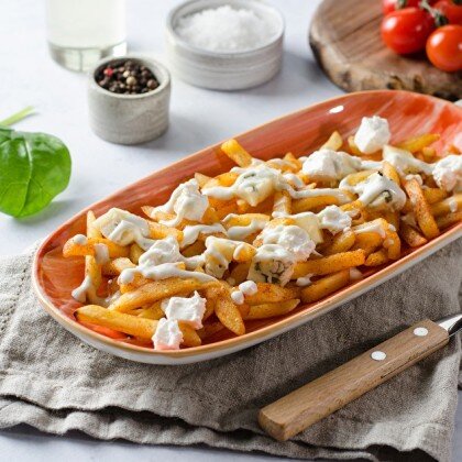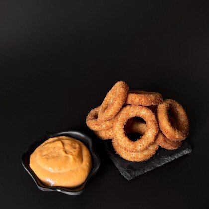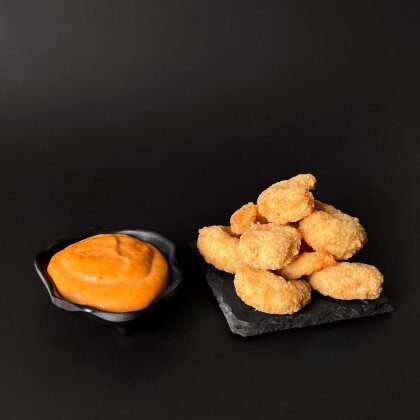 Золотистые хрустящие шарики, внутри которых скрывается нежный, тягучий сливочный сыр с деликатным грибным вкусом и кисло-сладким соусом.